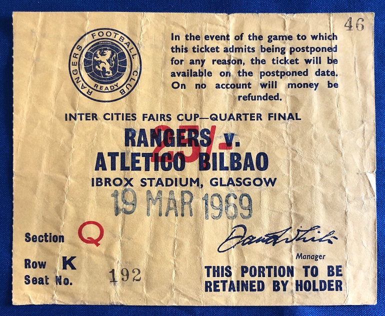 19th March 1969 – Rangers v Atletico Bilbao – Inter Cities Fairs Cup