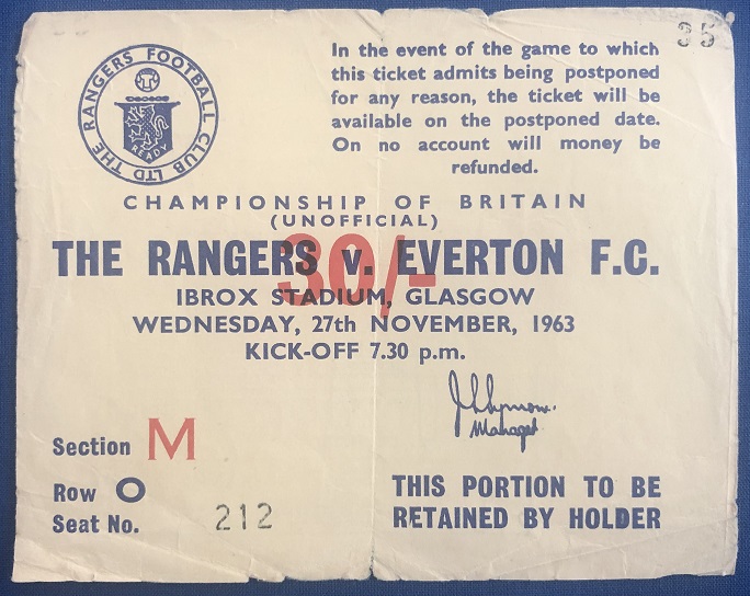 27th November 1963 – Rangers v Everton – British Championship decider 1st leg