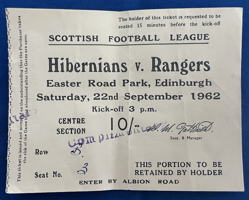 22nd September 1962 – Hibernian v Rangers – Scottish League