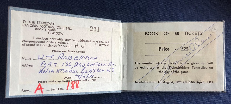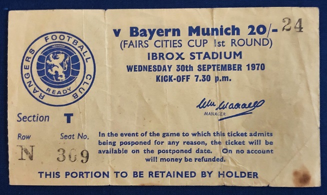 30th September 1970 – Rangers v Bayern Munich – Inter Cities Fairs Cup