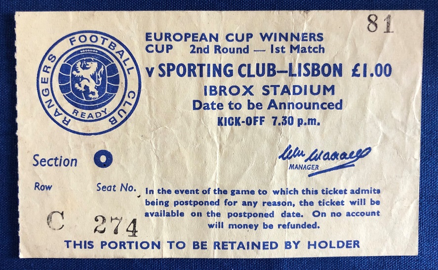 20th October 1971 – Rangers v Sporting Lisbon – European Cup Winners Cup