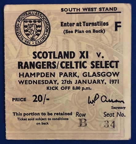 27th January 1971 – Scotland XI v Rangers & Celtic XI – Ibrox disaster fund