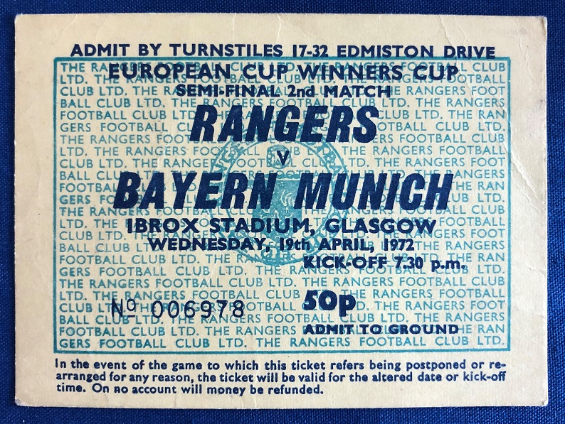 19th April 1972 – Rangers v Bayern Munich – European Cup Winners Cup Semi-Final 2nd Leg