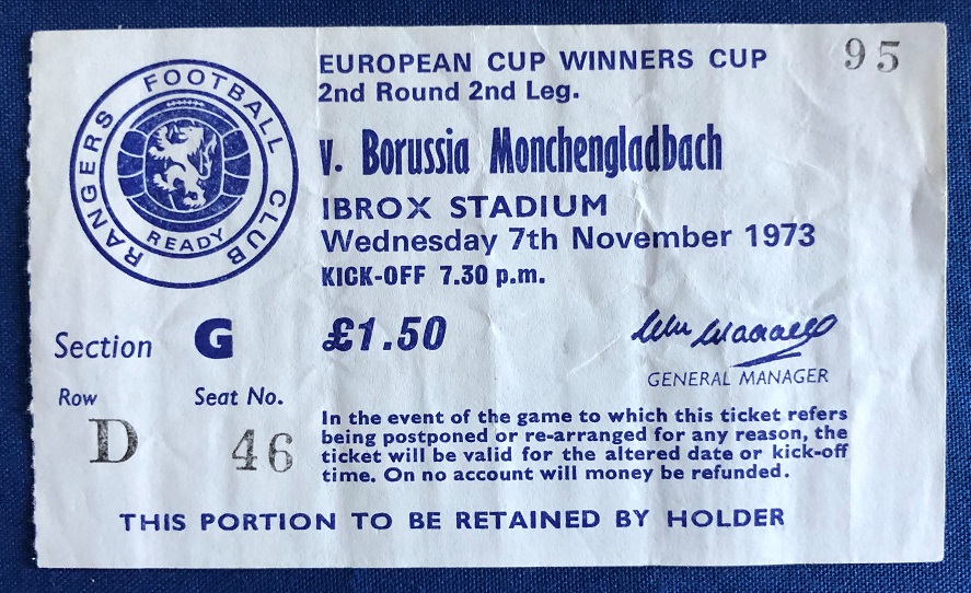 7th November 1973 – Rangers v Borussia Monchengladbach – European Cup Winners Cup