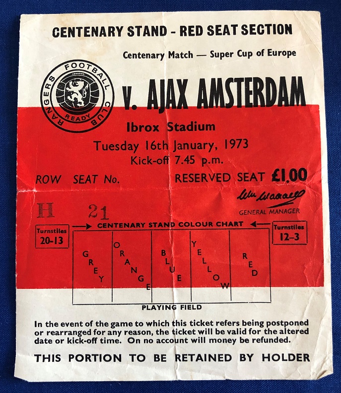 16th January 1973 – Rangers v Ajax – Super Cup Final 1st Leg