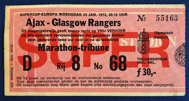 24th January 1973 – Ajax v Rangers – Super Cup Final 2nd Leg