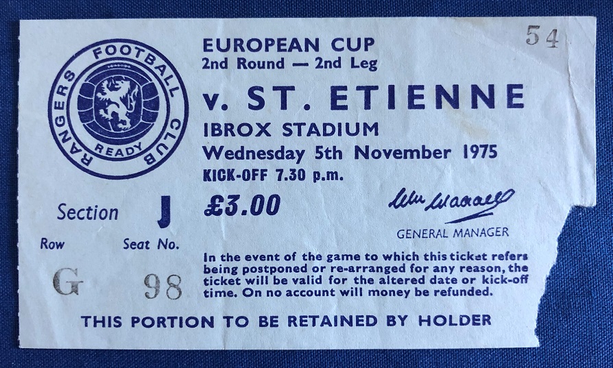 5th November 1975 – Rangers v St. Etienne – European Cup