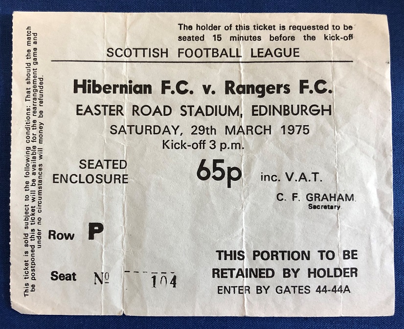 29th March 1975 – Hibernian v Rangers – Scottish League