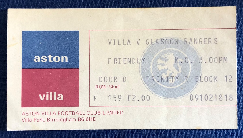 9th October 1976 – Aston Villa v Rangers – Friendly