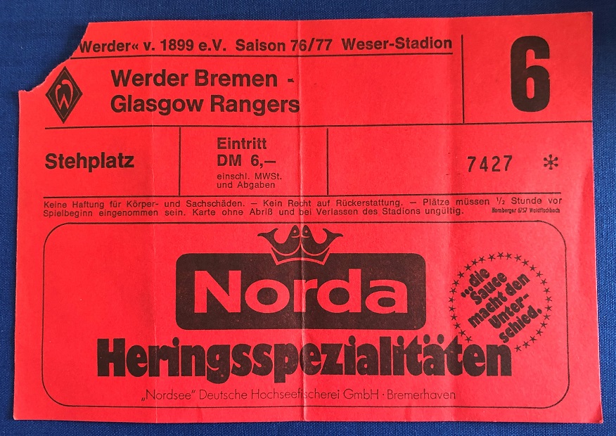 27th July 1976 – Werder Bremen v Rangers – Friendly