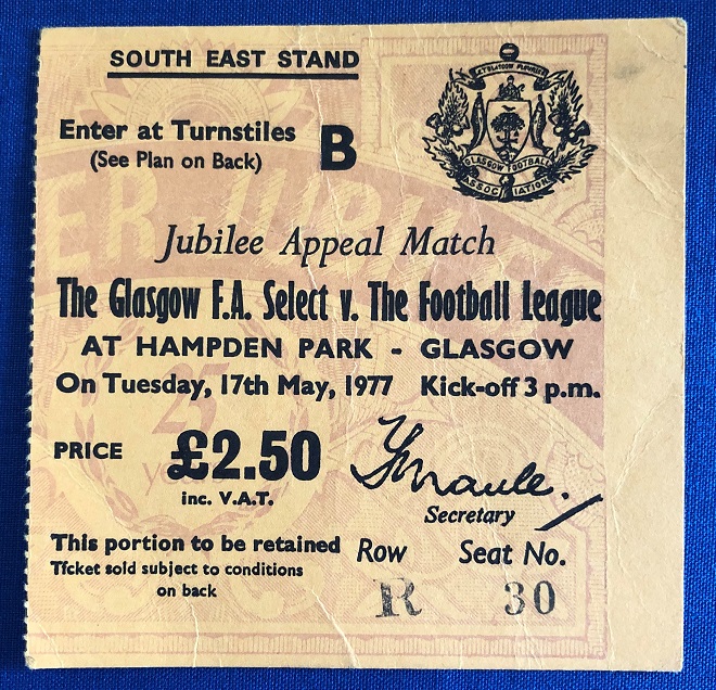 17th May 1977 – Glasgow F.A. Select v The Football League – Jubilee Appeal match