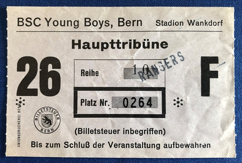 31st August 1977 – BSC Young Boys v Rangers – European Cup Winners Cup