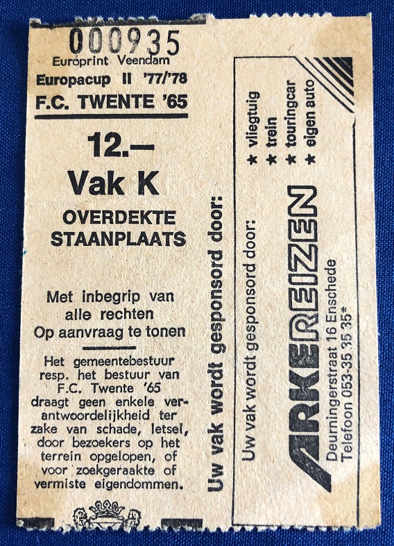 28th September 1977 – F.C. Twente v Rangers – European Cup Winners Cup