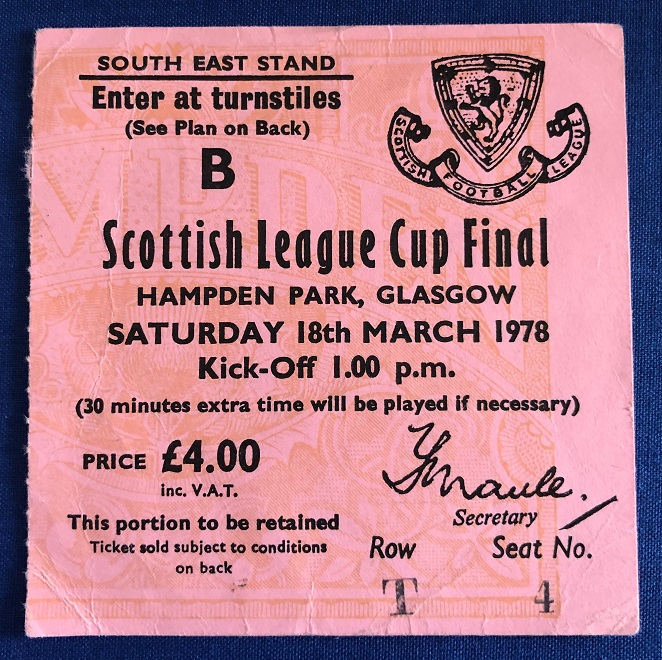 18th March 1978 – Rangers v Celtic – Scottish League Cup Final