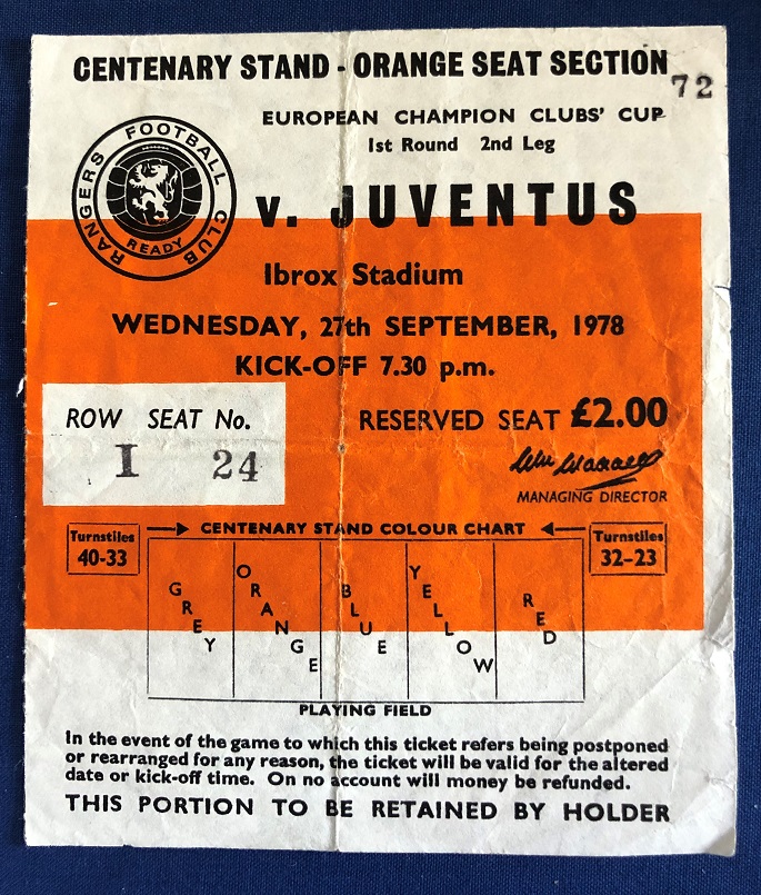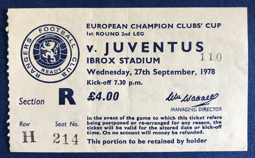19th September 1979 – Rangers v Fortuna Dusseldorf – European Cup Winners Cup