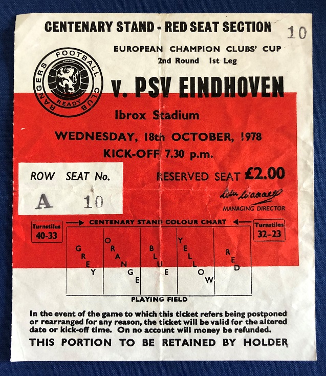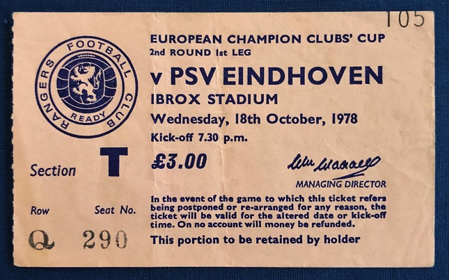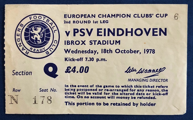 1st November 1978 – PSV Eindhoven v Rangers – European Cup