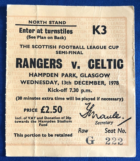 13th December 1978 – Rangers v Celtic – Scottish League Cup Semi-Final