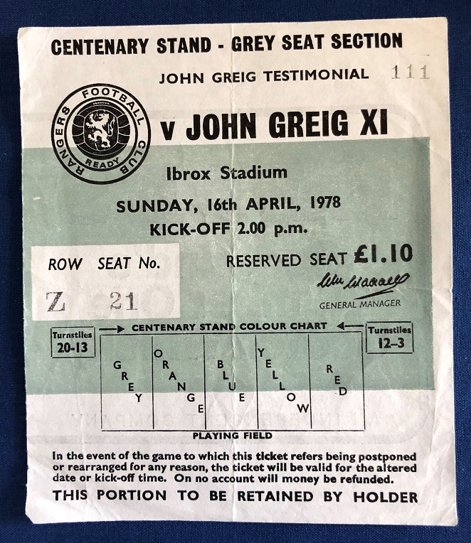 16th April 1978 – Scotland XI v Rangers – John Greig Testimonial