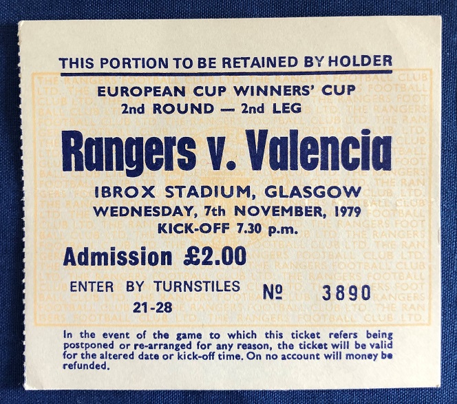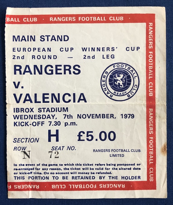 24th October 1979 – Valencia v Rangers – European Cup Winners Cup