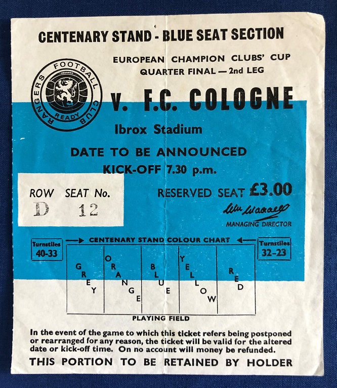 21st March 1979 – Rangers v F.C. Cologne – European Cup