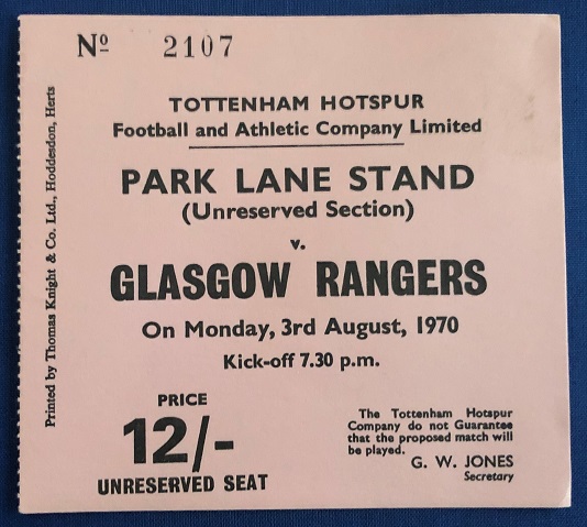 3rd August 1970 – Tottenham Hotspur v Rangers – Friendly