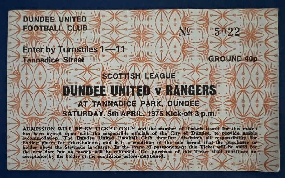 5th April 1975 – Dundee United v Rangers – Scottish League