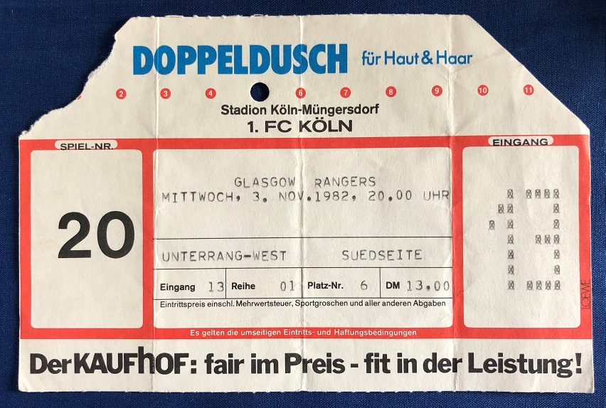 3rd November 1982 – F.C. Cologne v Rangers – UEFA Cup