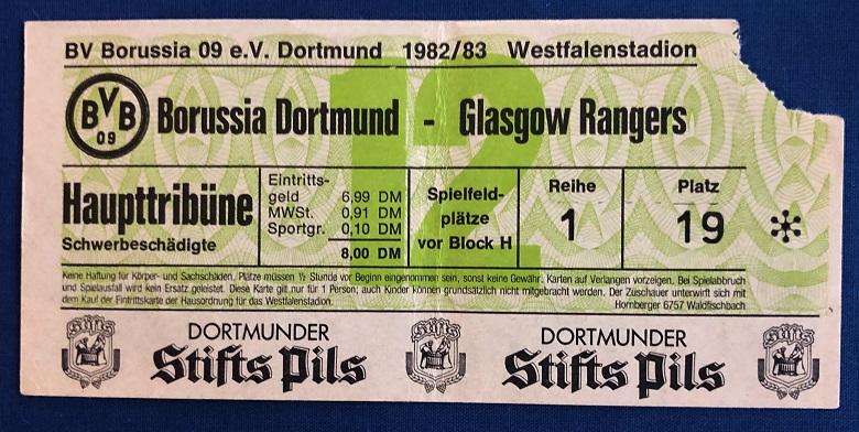 29th September 1982 – Rangers v Borussia Dortmund – UEFA Cup