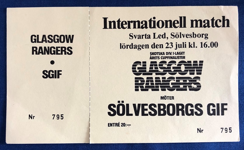 23rd July 1983 – Solvesborgs GIF v Rangers – Friendly