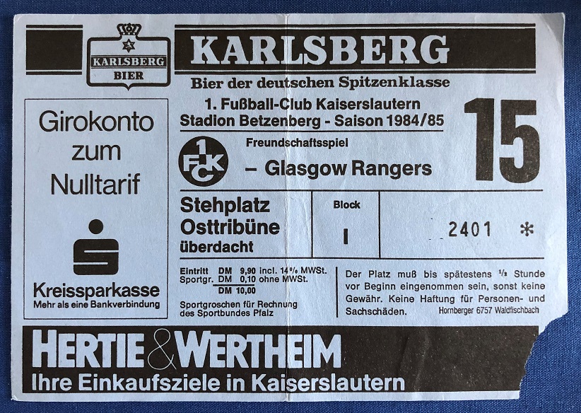 5th August 1984 – F.C. Kaiserslautern v Rangers – Friendly