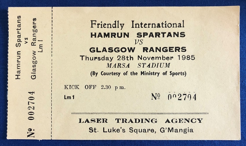 28th November 1985 – Hamrun Spartans v Rangers – Friendly