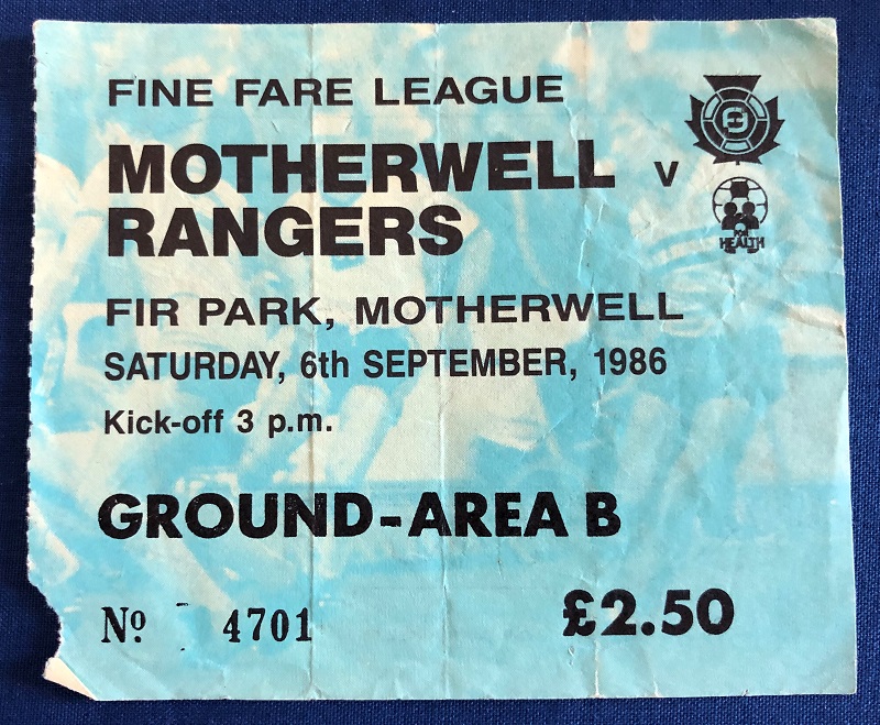 6th September 1986 – Motherwell v Rangers – Scottish League