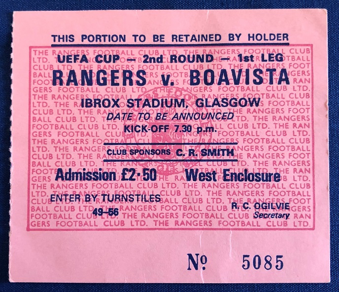23rd October 1986 – Rangers v Boavista – UEFA Cup