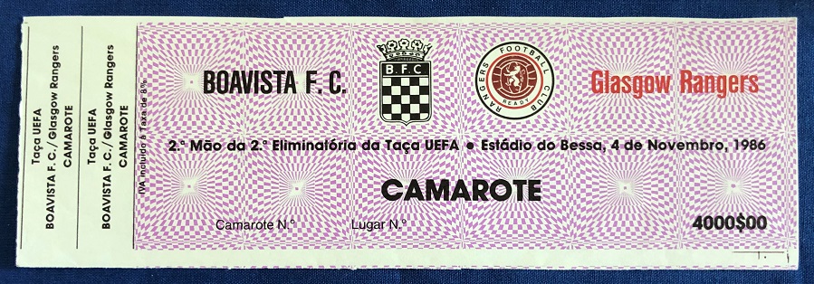 4th November 1986 – Boavista v Rangers – UEFA Cup
