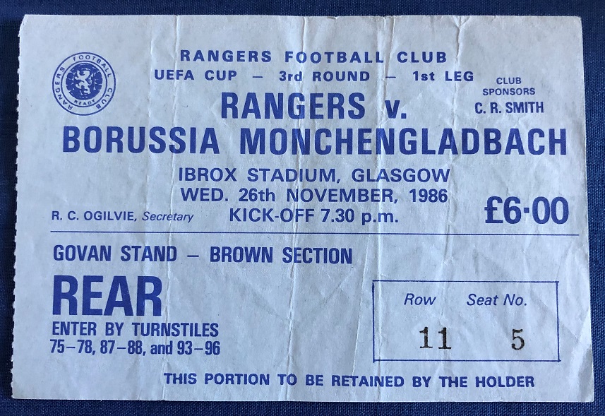 26th November 1986 – Rangers v Borussia Monchengladbach – UEFA Cup