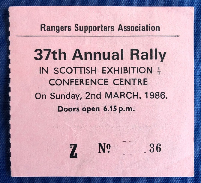 2nd March 1986 – Rangers Supporters Association – 37th Annual Rally