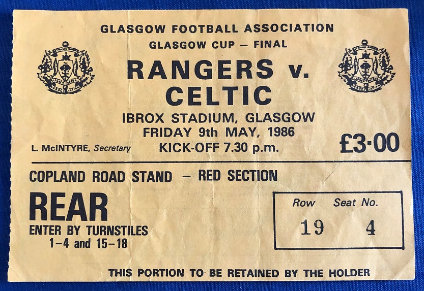 9th May 1986 – Rangers v Celtic – Glasgow Cup Final