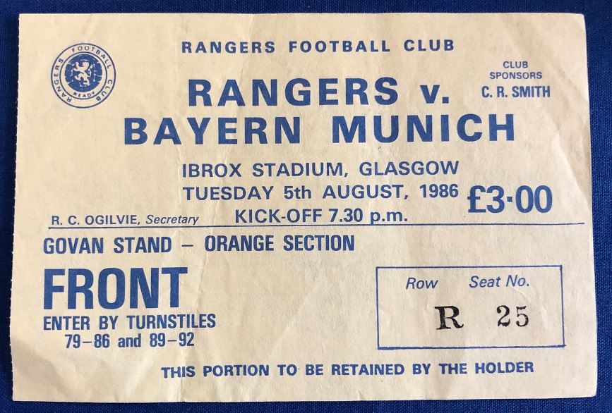 5th August 1986 – Rangers v Bayern Munich – Friendly