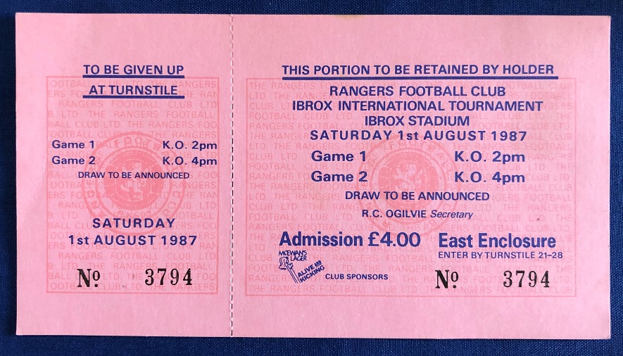 2nd August 1987 – Rangers v Porto Allegre – Friendly