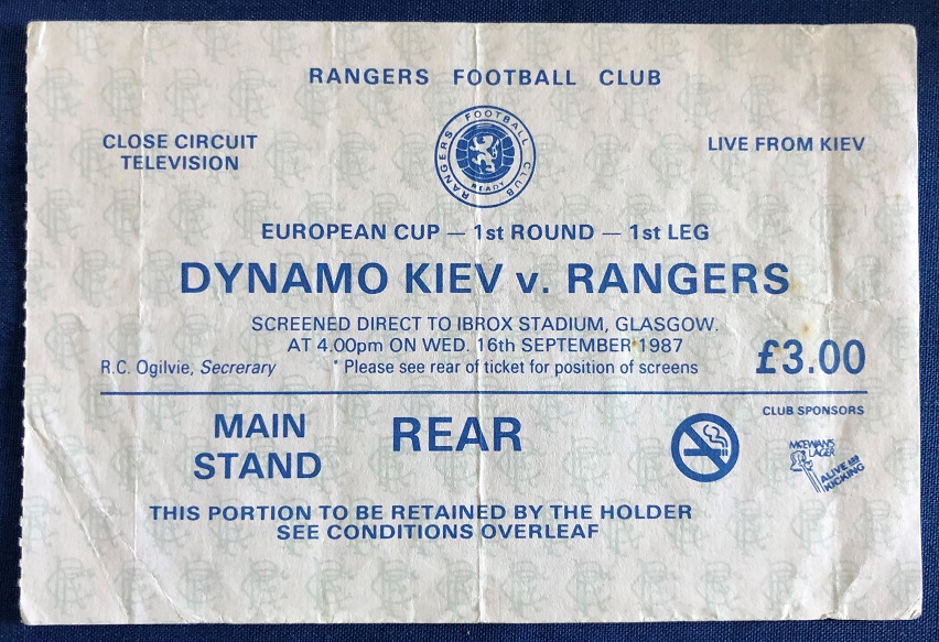 16th September 1987 – Dynamo Kiev v Rangers – European Cup – Beam back tickets