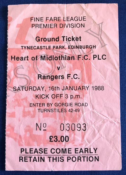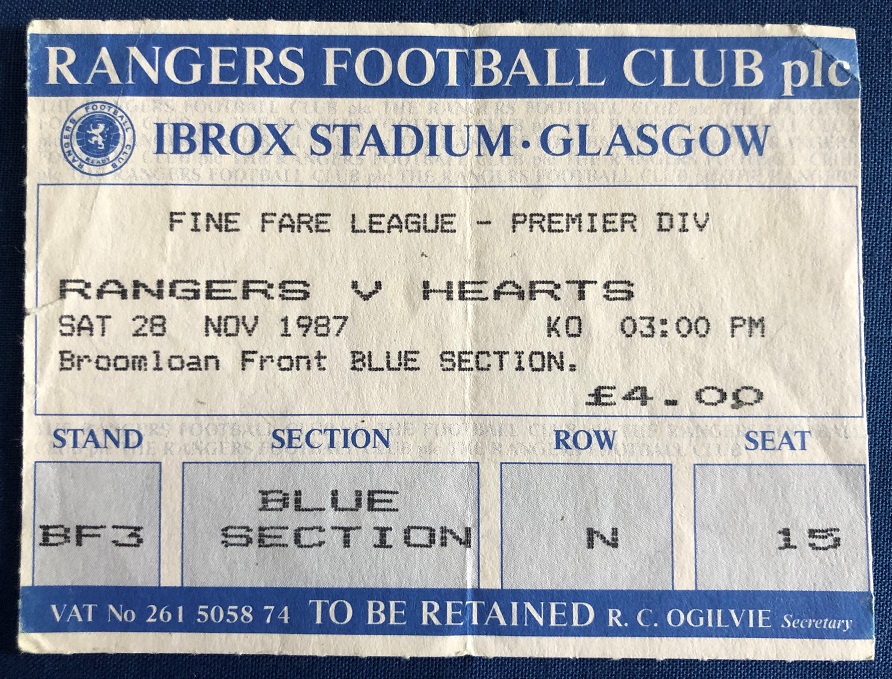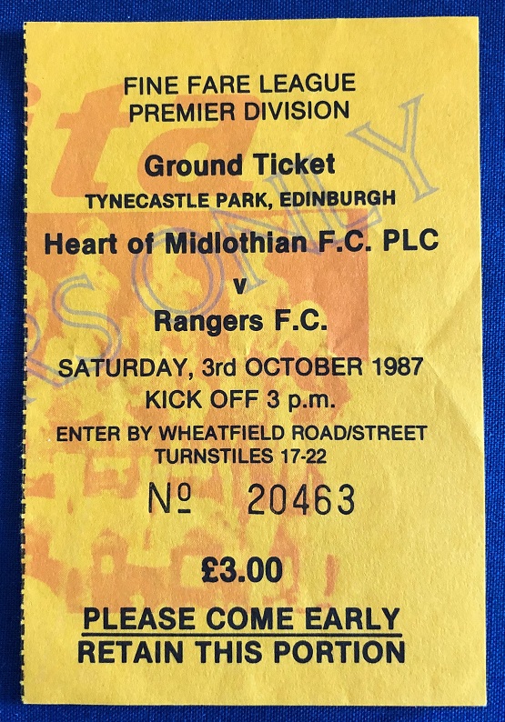 3rd October 1987 – Hearts v Rangers – Scottish League