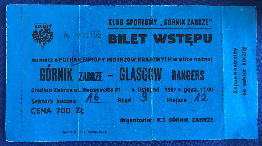 21st October 1987 – Rangers v Gornik Zabrze – European Cup