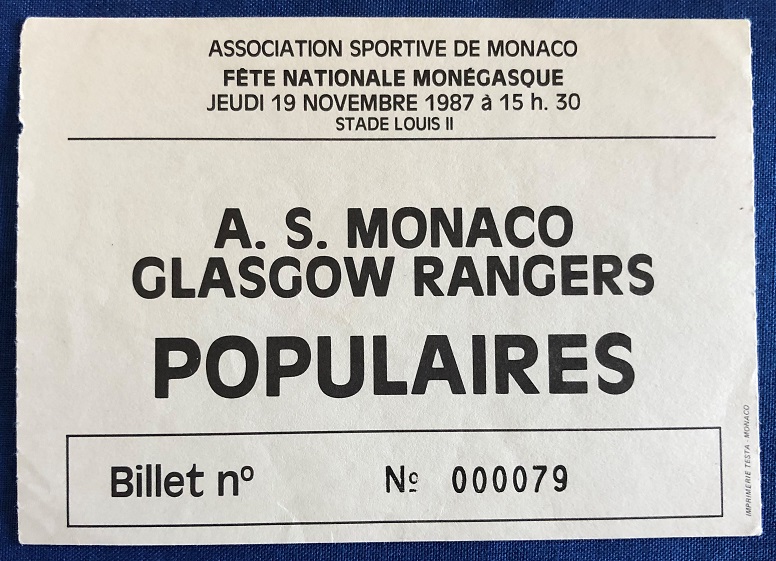 19th November 1987 – A.S. Monaco v Rangers – Friendly