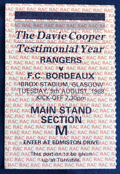 9th August 1988 – Rangers v Bordeaux – Davie Cooper Testimonial