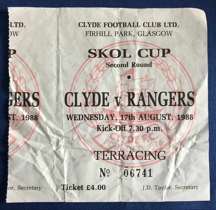17th August 1988 – Clyde v Rangers – Scottish League Cup