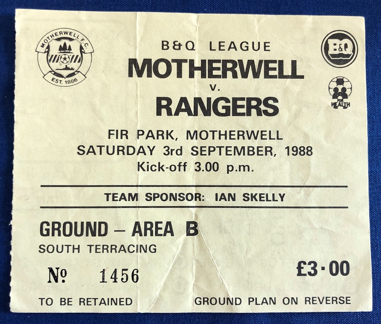 3rd September 1988 – Motherwell v Rangers – Scottish League