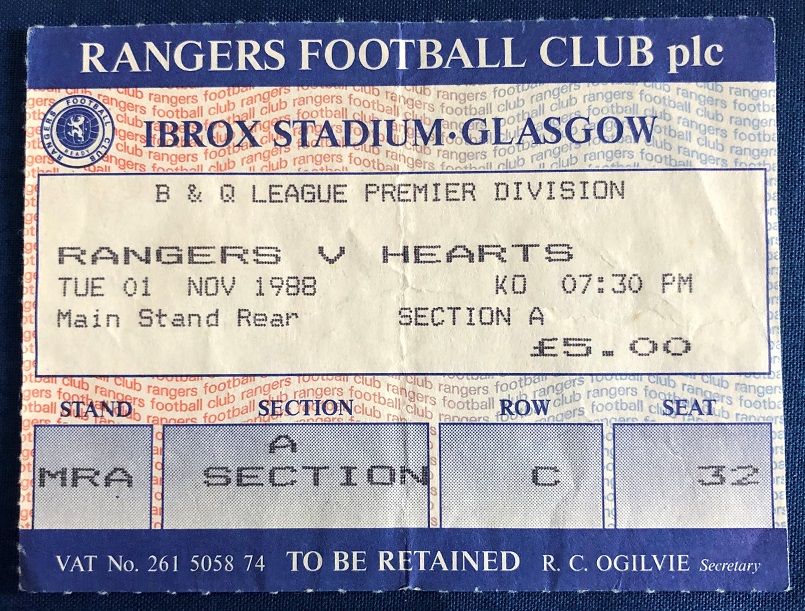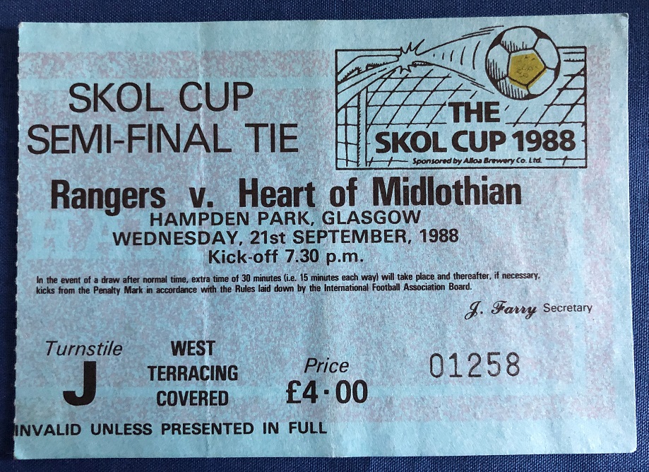 21st September 1988 – Rangers v Hearts – Scottish League Cup Semi-Final