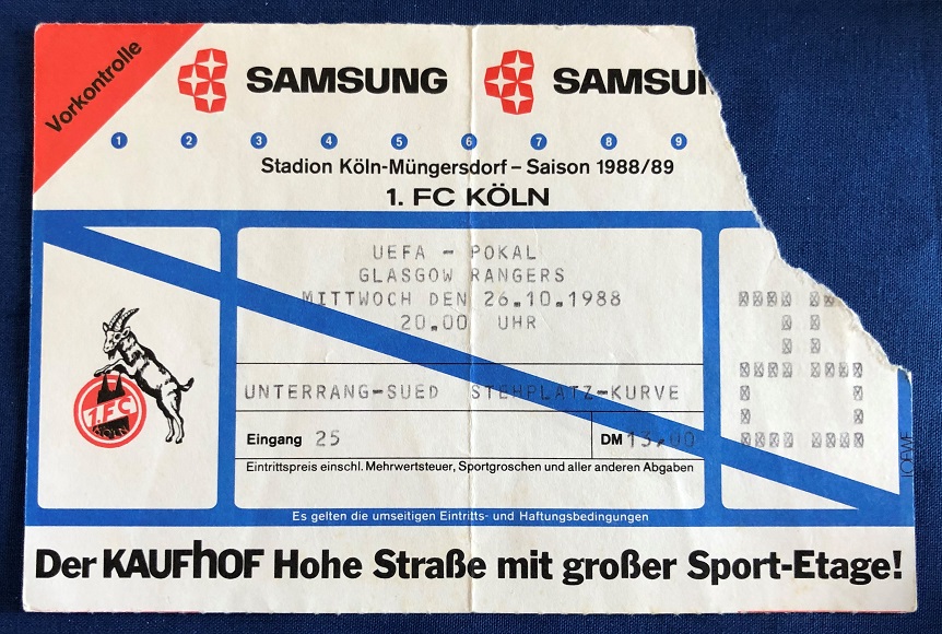 26th October 1988 – F.C. Cologne v Rangers – UEFA Cup