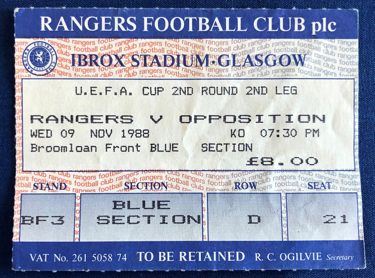 9th November 1988 – Rangers v F.C. Cologne – UEFA Cup