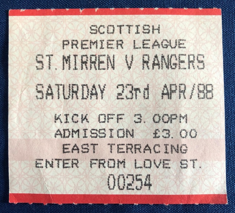 23rd April 1988 – St. Mirren v Rangers – Scottish League